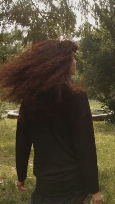 A cozy angora dress with a lace underskirt and elasticated waistband. Straight cut and long sleeves. Consists of two parts, perfect for autumn days.