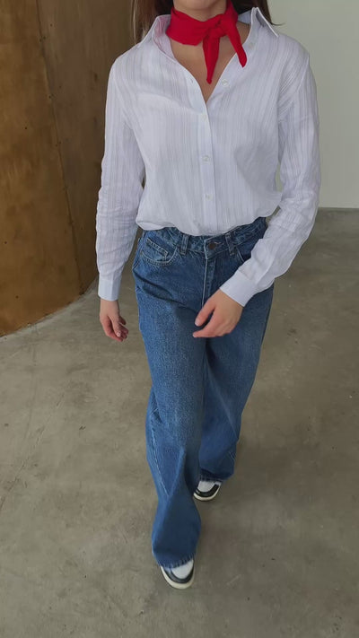 Біла сорочка вільного крою з фактурної бавовни